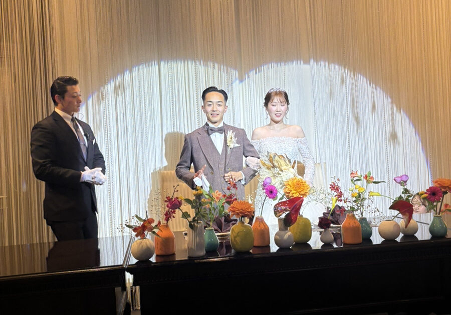 この両名、実はどちらもうちの社員です。空調サービス部 星君と 営業事務・総務・経理 星さんです。子供が出来たので星さんは結婚式はもう諦めかけていたとの事。